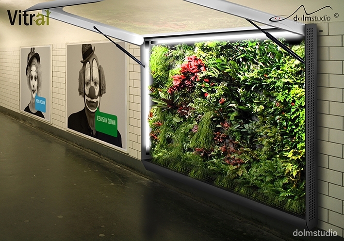 Ces vitrines biologiques, nommées Vitral, possèdent les dimensions de celles des panneaux d’affichages publicitaires des couloirs de métro. Ainsi, elles peuvent s’installer aux emplacements en lieu et place des affichages actuels.