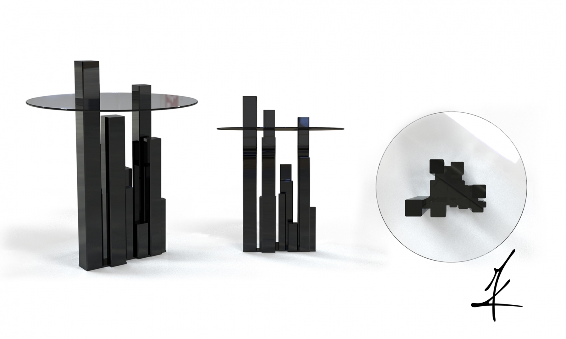 Ce bout de canapé ou table de chevet est réalisé en barres d’aluminium anodisées surmontées d’un verre sécurit 8 mm. Différentes teintes d’anodisation et finition verre sont possibles sur demande.