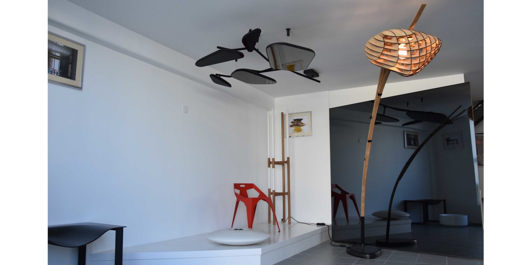 Lamel est une suspension de grande envergure. Avec ses 2,80 m de diamètre elle est plus qu’une lampe. C’est une véritable pièce architecturale. Composée de 40 lamelles diffusantes et d’un cœur lumineux, elle s’intègre dans de grands espaces hauts sous plafond. Par sa forme, elle est sensible au moindre courant d’air la rendant mobile et tournoyante avec douceur. La structure de cette lampe est en aluminium et ses lamelles sont en tissu diffusant classé M1, démontables et lavables.